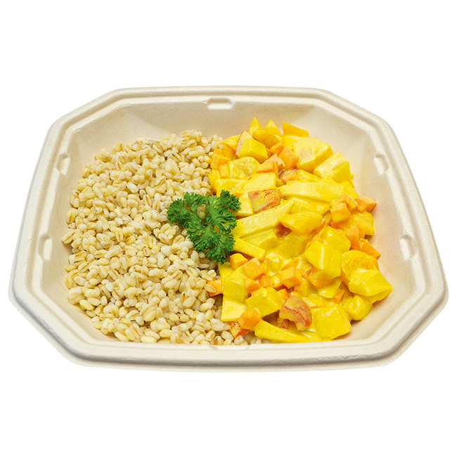 aus Kokosmilch, Ananas, Mango, Paprika und Möhre, dazu Ebly