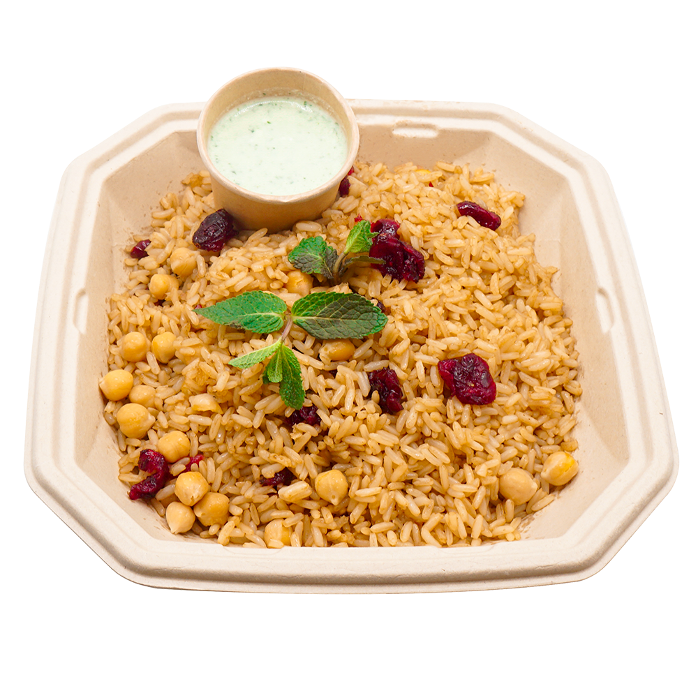 mit Kichererbsen, Cranberrys, Kreuzkümmel und Gurken-Minz-Joghurt