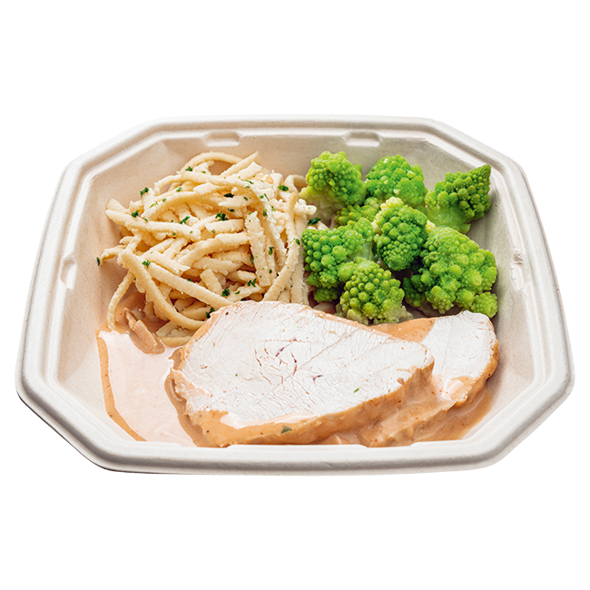 mit Rahmsoße, Romanescogemüse und Spätzle