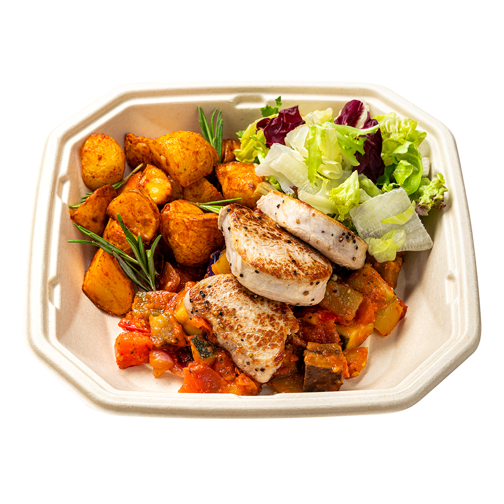 auf Ratatouille-Gemüse mit Rosmarinkartoffeln